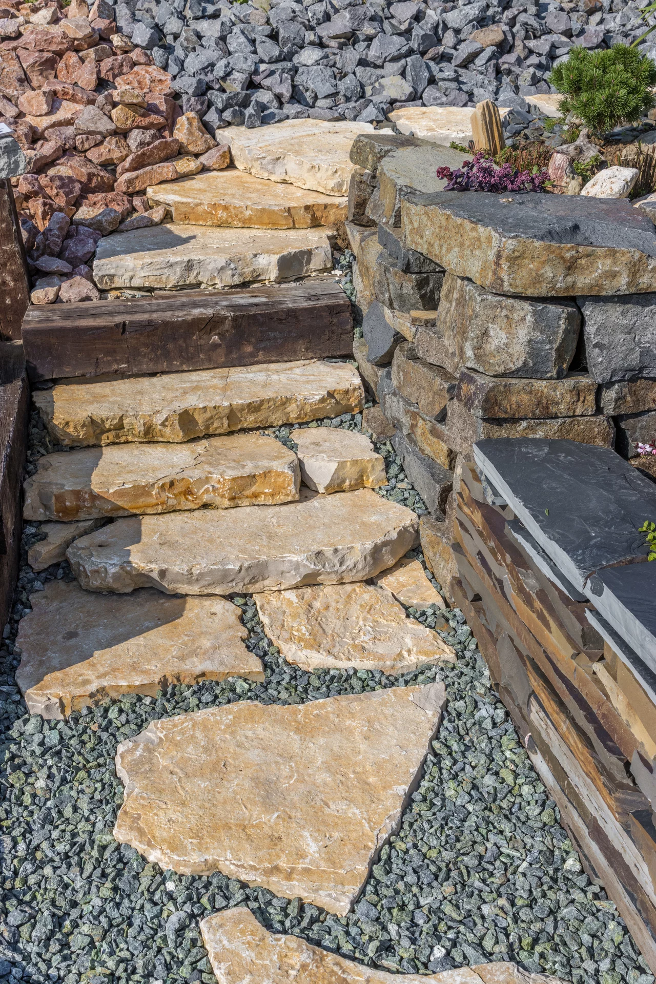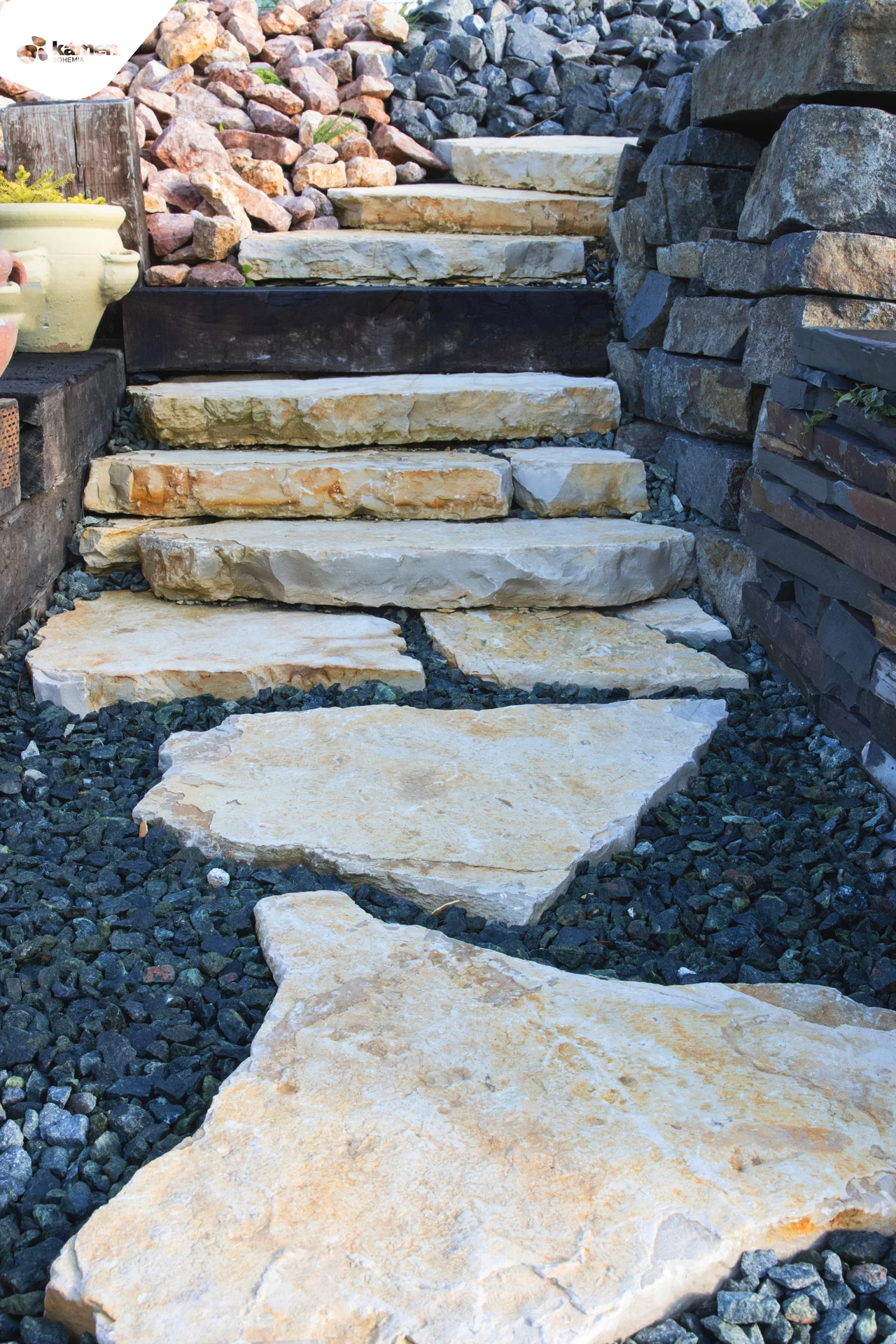 Zajímavá žlutá barva kamene vápenec se skvěle hodí do každé zahrady. Nášlapné kameny vápenec krásně kontrastují se zeleným trávníkem či kvetoucími letničkami. Tento přírodní kámen se nejčastěji využívá k vytvoření jednoduchých zahradních chodníků. Vápenec stačí jednoduše položit na trávník či vysypanou štěrkovou část a chodník do zahrady je hotov. Kámen se velmi dobře kombinuje i s jinými druhy kamene, například s tmavšími štěrky či oblázky.