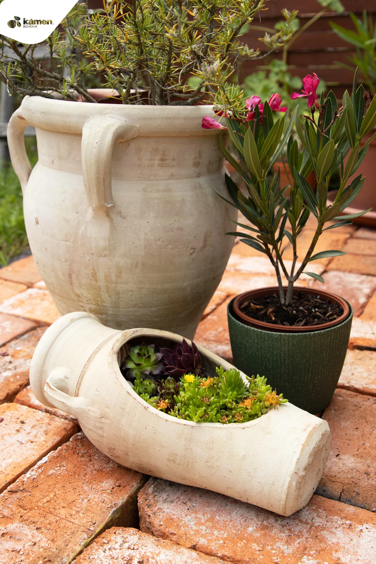 Objevte krásu přírodních materiálů s naší kolekcí amfor a hliněných květináčů! Naše amfory a květináče jsou ručně vyrobeny z hliněného materiálu, což z nich činí nejen stylové dekorativní prvky, ale také trvanlivé a odolné nádoby pro vaše rostliny. S jejich jedinečným designem a texturou přinesete do vašeho interiéru nebo exteriéru stylový dotek přírody. Vyzvedněte krásu svých oblíbených květin a rostlin s našimi elegantními amforami a květináči! Amfory a hliněné květináče nabízíme ve třech barvách: přírodní, černá a bílá. Na prodejně naleznete různé tvary a velikosti dle aktuální nabídky. Objevte naši kolekci ještě dnes!