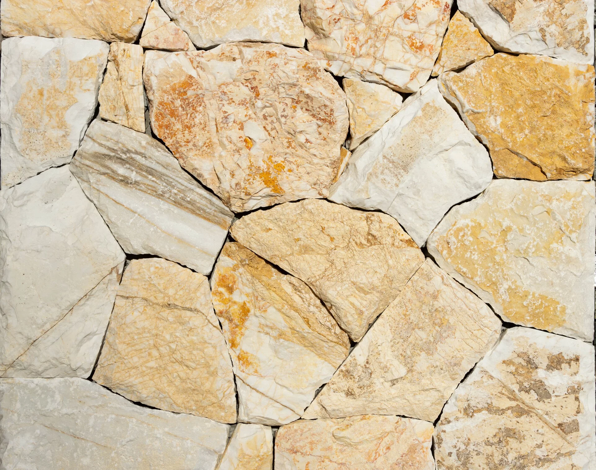 Obklad a rohové kusy nepravidelného kamene ve slunečních odstínech žluté působí příjemným, jemně drsným dojmem. Je často používán na obklad fasád, soklů nebo zahradních zídek, lze jej použít i na obklad krbů či vnitřních stěn. Jeho nahrubo opracovaný povrch vyvolává dojem stěn a zdí starověkých hradů či zámků. Ve spojení se zelenými sukulenty nebo mohutnějšími stromky vytvoří příjemné a klidné místo.