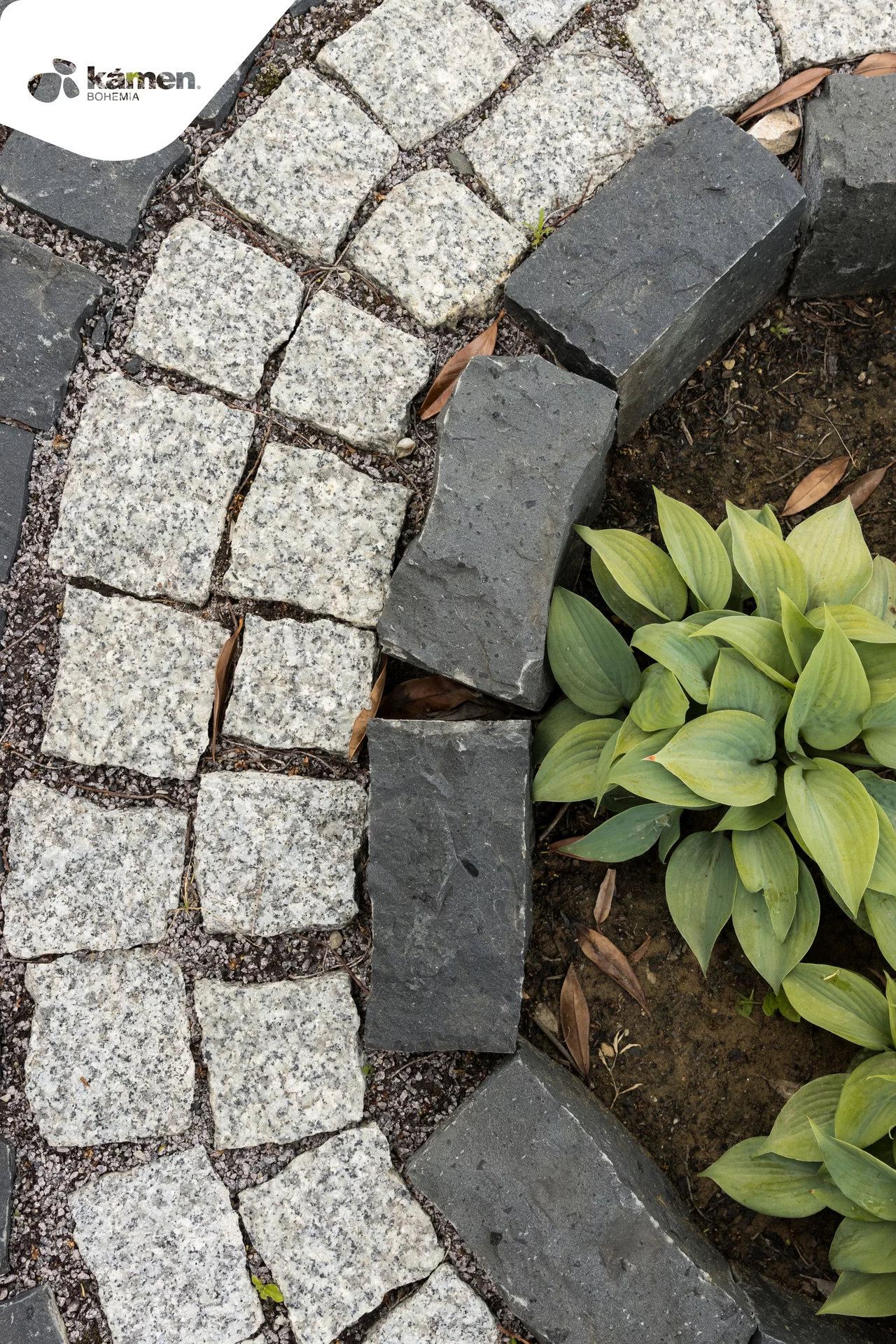 Žulová kamenná kostka je velmi oblíbeným přírodním kamenem pro výstavbu příjezdových cest či kamenných chodníků v zahradě. Světle šedá barva nechává vyniknout okolí a dominantní zeleň zahrady. V kombinaci s barevnými kamennými kostkami vytvaruje na chodníku zajímavou, nápaditou koláž. Na větších plochách je možnost pokládat žulové kamenné kostky do jedinečných vzorů, čímž dostaneme originální a unikátní architektonické dílo.